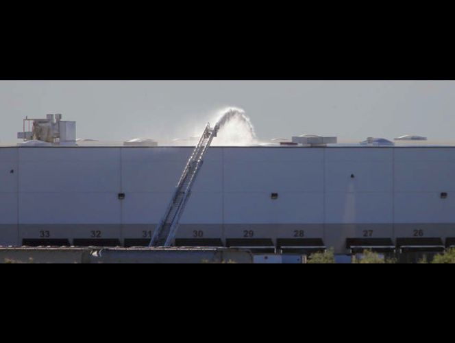 water onto the roof of the warehouse in an effort to keep the chemicals